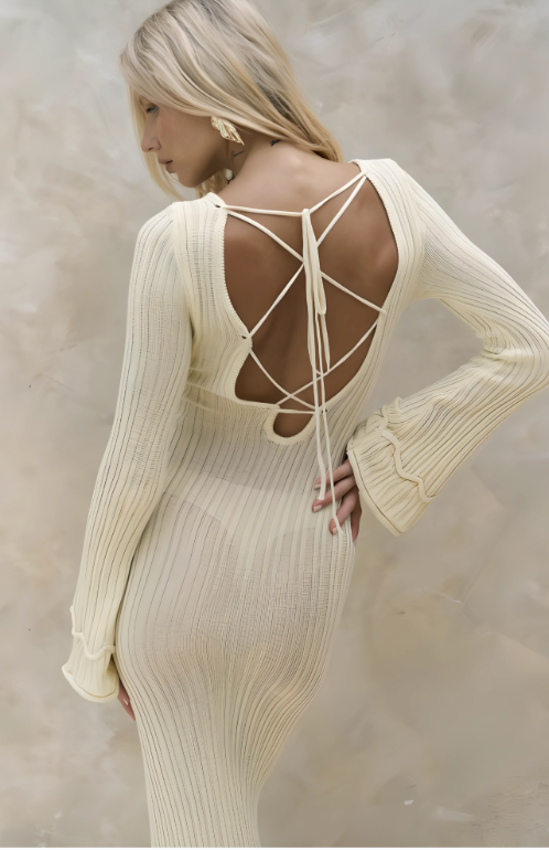 El Ada Dress es una oda a la simplicidad elegante y al confort sin esfuerzo. Este vestido largo, confeccionado en un delicado tejido de punto, se convierte en la segunda piel perfecta para tus días de verano. Su diseño minimalista y ajustado realza la figura de manera sutil y sofisticada.